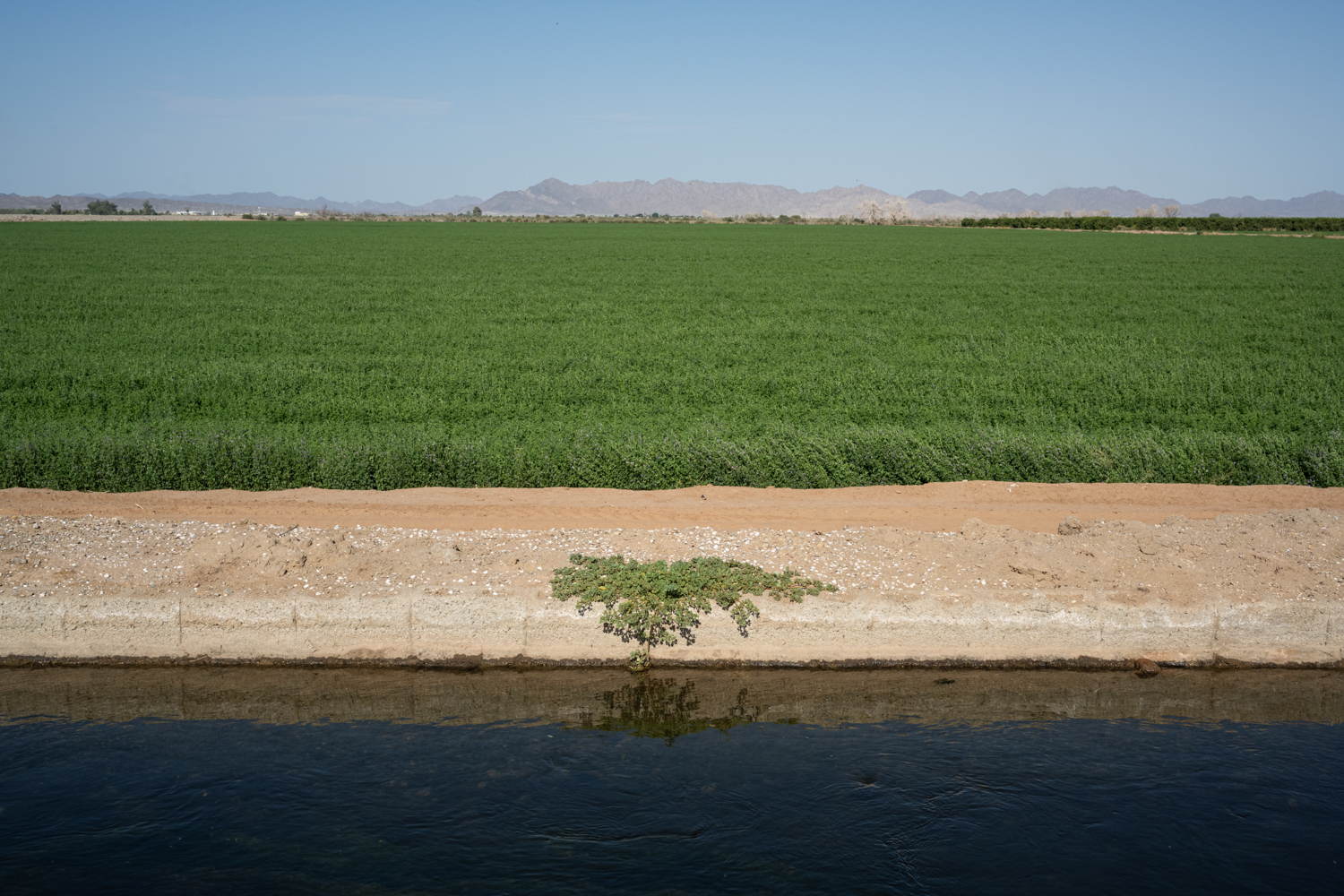 In our own recent history of 40 years, mines started in the 50s and 60s have left huge scars on the land. Radiation from the hundreds of abandoned uranium mines and nuclear tests are now at toxic levels causing cancer across the region and human populations continue to boom alongside those giant dams and their sequestered rivers. Unfathomably large farms consume vast amounts of unregulated ground water, reducing water availability elsewhere. The Gila River, Rio Grande, Little Colorado and Santa Cruz rivers are now frequently dry, being diverted elsewhere. The Colorado River delta itself has dried out and died back, no longer receiving any water from the river upstream. Borders that were once lines in shifting sands have become great iron walls towering 8 meters high, blocking the passage of not only humans but migratory and native animals as well. Solar farms, and mammoth server farms constructed to store personal data, now occupy vast swaths of land, often replacing many of the failed crop farms.